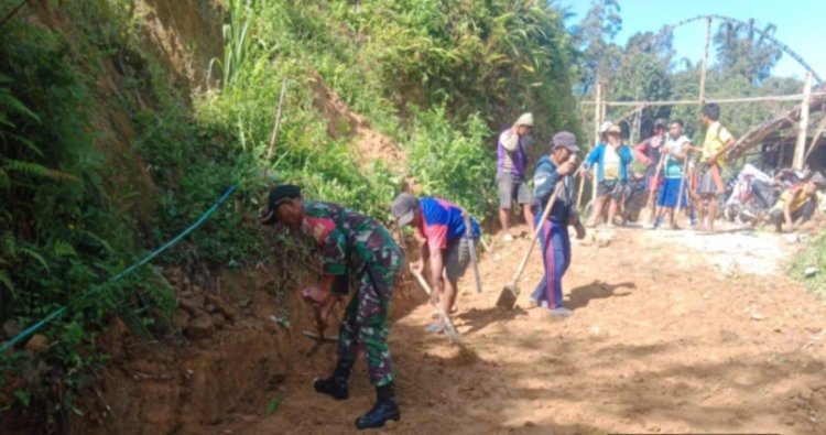 Babinsa dan Warga Gotong Royong Lebarkan Akses Jalan di Kabae, Mamasa
