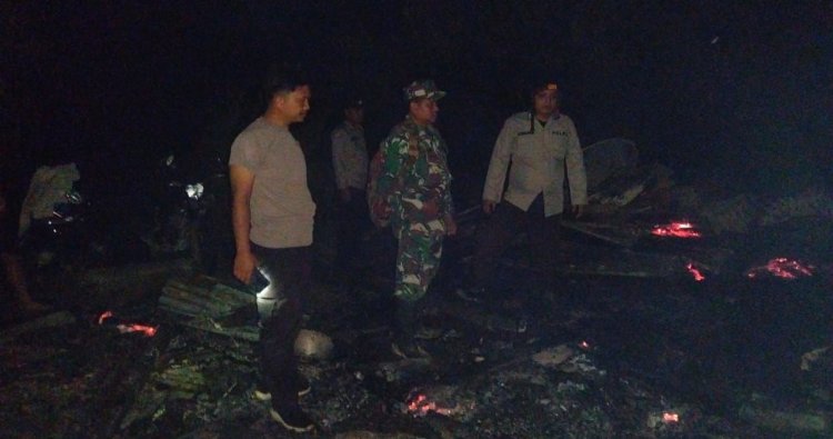 Mendapatkan laporan dari salah satu warga setempat, Babinsa Serda Ruslang, bersama Bhabinkamtibmas langsung mendatangi lokasi kejadian kebakaran.