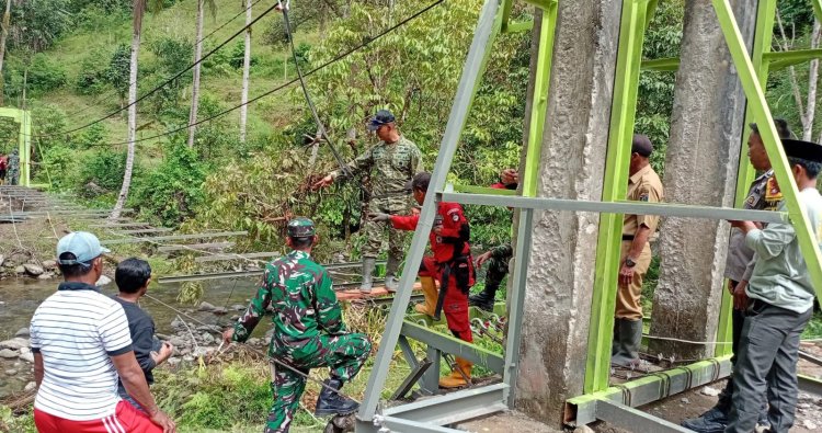Jembatan gantung ini diperbaiki atas inisiatif Kodim 1428/Mamasa dengan mengajak Komunitas Pecinta Alam Vertical Rescue Indonesia.