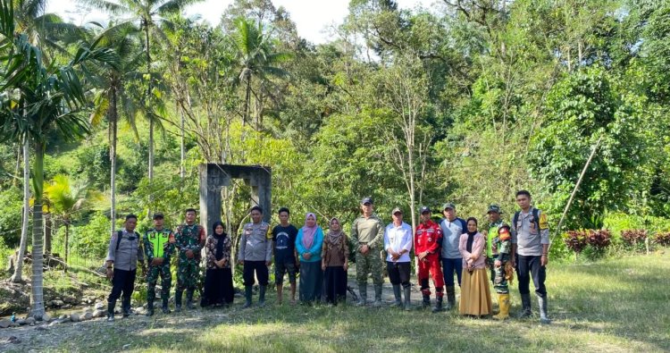 Dalam kunjungannya, Letkol Arh Edwin Hermawan, S.H., M.A.P bersama rombongan mengecek persiapan pembenahan jembatan gantung roboh, yang setiap hari diseberangi anak sekolah beserta guru-guru.